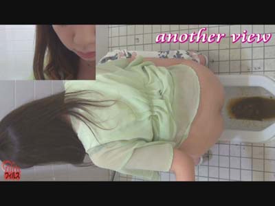 卑猥過ぎる音と共に、白い便器が茶色く染まるくらいの下痢便を噴射!!